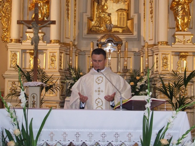 Uroczystą Eucharystię sprawował w obecności swoich najbliższych: rodziców, rodzeństwa, Kapłanów, a także wspólnoty parafialnej.