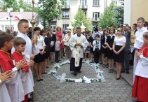 Prymicjant został powitany u progu parafialnej świątyni przez Proboszcza Parafii ks. płk. Tomasza Anisiewicza. Ta świątynia przez długi okres czasu była dla Ciebie domem. Tu przyjmowałeś sakramenty, a dziś te sakramenty sam będziesz tu sprawował. Ten kościół jest twoim domem. Takie jest też hasło duszpasterskie. Życzę Ci, aby każdy Kościół, każda parafia do której będziesz posłany przez naszego biskupa była zawsze Twoim domem powiedział ks. Proboszcz.