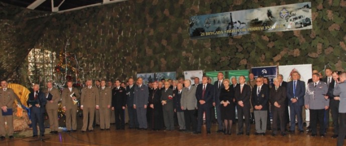 Składając życzenia, które wypowiedział w imieniu swoim jak i innych przybyłych komendantów, szefów i dowódców poszczególnych służb mundurowych, powiedział: ?Święta Bożego Narodzenia to czas niezwykły. To czas podniosłej atmosfery w naszych rodzinnych domach, pozwalającej nam wreszcie, tak naprawdę bez pospiechu, spotkać się z naszymi najbliższymi. Pomimo radosnej atmosfery, w takim dniu przywołujemy w pamięci naszych żołnierzy oraz funkcjonariuszy, którzy oddali swoje życie przywracając pokój, zapewniając porządek publiczny, czy oddali swoje życie w akcjach kryzysowych?.