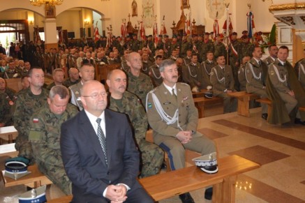 Uroczystości rozpoczęła Msza święta sprawowana w naszym parafialnym kościele, której przewodniczył i Słowo Boże wygłosił J. E. Biskup Polowy Generał Brygady Józef Guzdek. Wraz z Biskupem Mszę świętą koncelebrowali licznie przybyli kapelani wojskowi, na czele z Dziekanem Wojsk Lądowych Ks. ppłk Grzegorzem Krupskim. W Eucharystii uczestniczył także Naczelny Kapelan Ewangelickiego Duszpasterstwa Wojskowego ? Ewangelicki Biskup Wojskowy Mirosław Wola.
