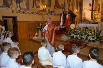 Ksiądz Proboszcz zachęcił dzieci do częstego przyjmowania Komunii w Eucharystii, by mieli siłę do przezwyciężania wszelkich trudności życiowych.