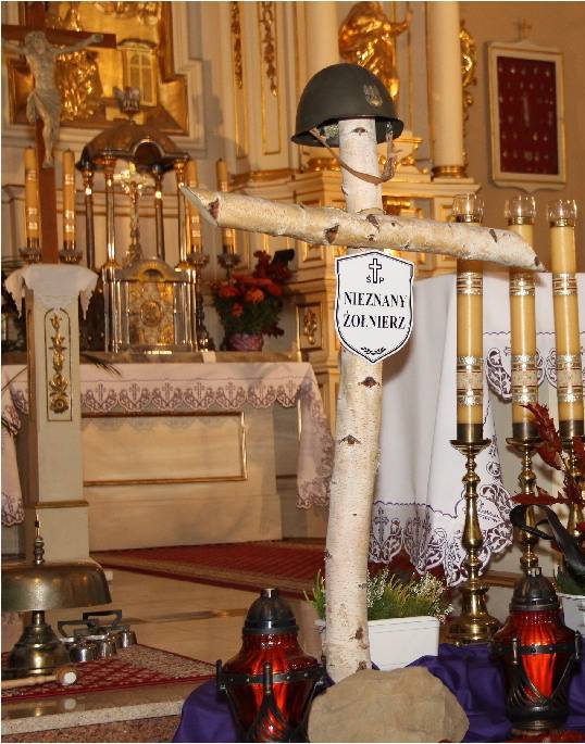 Homilię wygłosił ks. ppor. Michał Kollek. ?Nikt nie ma większej miłości od tej gdy ktoś życie swoje oddaje za przyjaciół swoich...? słowa Pana Jezusa są przypomnieniem o wszystkich co ginęli aby nas ?zbawić? swą krwią czerwoną. Groby nieznanych żołnierzy, bezimienne mogiły, cmentarze wojenne przypominają i wołają: Pamiętaj o nas bracie Polaku, pamiętaj o naszej ofierze. Dzisiaj obowiązkiem naszym jest pamięć i modlitwa za poległych w obronie naszej Polskiej Ziemi, za braci i siostry co życia nie szczędzili. Wierzymy,że ich imiona zapisane są w Księdze Życia" powiedział w swej homilii kaznodzieja.