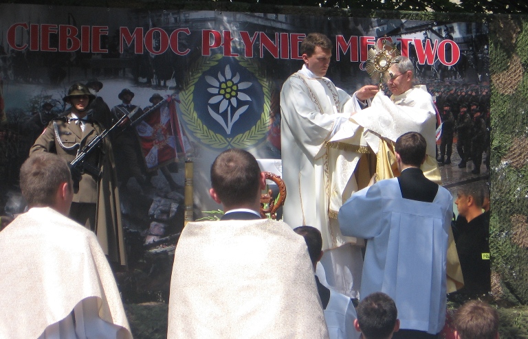 ?TA SAMA KREW CIĘ SKROPIŁA, KTÓRA NAS Z GRZECHÓW OBMYŁA? śpiewamy w kolejnej zwrotce mając pełną świadomość, że zarówno krew Chrystusowa jak i krew przelana w walkach o niepodległość naszej Ojczyzny nie poszła na marne.