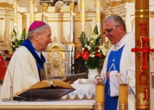 Przedstawiciele Rady Parafialnej powitali księdza biskupa, nawiązując do zawołania biskupiego sprzed 15 laty, słów ?Surgite, eamus? (wstańcie, chodźmy). Następnie ks. płk Władysław Maciej Kozicki ? kapelan Garnizonu Rzeszów i proboszcz naszej parafii powitał dostojnych gości i zaprosił do udział w Eucharystii, podczas której szczególną modlitwą otoczyliśmy Polonię i Polaków którzy znaleźli się poza granicami Rzeczypospolitej po II wojnie światowej.