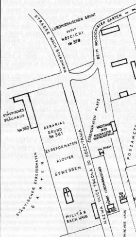 IDEAL PLAN DES SÜDLICHER THEILES DER STADT RZESZÓW IM JAHRE 1828 ze zbiorów Archiwum Państwowego w Rzeszowie wskazuje już na kościół bez zabudowań klasztornych. Wygląda więc na to, że większość zabudowań klasztornych rozebrano a materiały wykorzystano na budowę dodatkowych obiektów magazynowych oraz widniejącą na planie piekarnię wojskową. Rzeszowski magazyn żywnościowy (Milibar ? Verpflegs - Magazine) należał bowiem do większych w Galicji. Podlegały mu filie w Leżajsku, Krośnie i Dukli[5].
