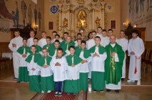 Eucharystia była sprawowana w intencji dziękczynnej za roczną formację LSO, z prośbą o Boże błogosławieństwo, potrzebne łaski i opiekę Matki Bożej oraz wszelką pomyślność z okazji zbliżających się imienin dla duszpasterza naszej wspólnoty ks. Pawła. Na Mszy Świętej byli obecni prawie wszyscy członkowie wspólnoty ministrantów i lektorów, podobnie jak innych grup - Oazy, Scholii oraz Maltańskiej Służby Medycznej. Zaraz po zakończeniu Wieczerzy Pańskiej wykonaliśmy pamiątkowe, grupowe zdjęcie naszej wspólnoty razem z duszpasterzem ks. Pawłem.