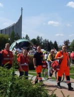 We Mszy Świętej uczestniczyli również nasi wolontariusze. Wspólnie z Wojewódzką Stacją Pogotowia Ratunkowego i Harcerską Grupą Ratowniczą połączyliśmy siły. Wystawiliśmy stacjonarny punkt pierwszej pomocy oraz patrole dbające o bezpieczeństwo modlących się pielgrzymów.