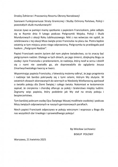 Módlmy się, abyśmy inspirowani przykładem św. Franciszka, zrozumieli wzajemną zależność wszystkich stworzeń, kochanych przez Boga, godnych miłości i szacunku.