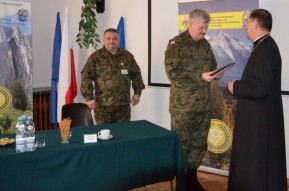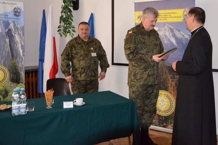 Biskup odznaczył dowódcę Podhalańczyków płk. dypl. Wojciecha Kucharskiego Medalem Błogosławionego ks. Jerzego Popiełuszki. Natomiast pułkownik Kucharski wręczył Księdzu Biskupowi Józefowi Guzdkowi piękną ręcznie wykonaną szarotkę - symbol wojsk górskich.