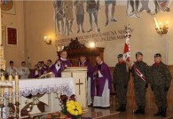 Homilię wygłosił ks. ppor. Michał Kollek. ?Nikt nie ma większej miłości od tej gdy ktoś życie swoje oddaje za przyjaciół swoich...? słowa Pana Jezusa są przypomnieniem o wszystkich co ginęli aby nas ?zbawić? swą krwią czerwoną. Groby nieznanych żołnierzy, bezimienne mogiły, cmentarze wojenne przypominają i wołają: Pamiętaj o nas bracie Polaku, pamiętaj o naszej ofierze. Dzisiaj obowiązkiem naszym jest pamięć i modlitwa za poległych w obronie naszej Polskiej Ziemi, za braci i siostry co życia nie szczędzili. Wierzymy,że ich imiona zapisane są w Księdze Życia" powiedział w swej homilii kaznodzieja.