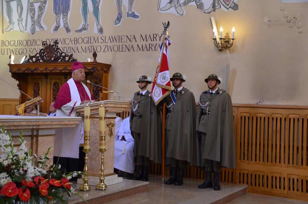 Uroczystości rozpoczęła o godzinie 9.30 Msza Św. za Ojczyznę odprawiona w kościele garnizonowym, której przewodniczył ks. płk kan. Władysław Maciej Kozicki, a koncelebrował kapelan 3 Podkarpackiej Brygady OT ks. ppor. Wojciech Środoń Na wstępie Ks. Bp. Edward Białogłowski wprowadził wiernych w genezę historyczną i społeczną wydarzeń sprzed 100 lat, a także sprzed 40 lat, gdy w Stoczni Gdańskiej rozpoczął się robotniczy zryw wolnościowy, jako sprzeciw wobec ówczesnego systemu. Ksiądz Biskup podziękował żołnierzom za ich ofiarną służbę i z okazji Święta Wojska Polskiego złożył na ręce Dowódcy Garnizonu gen. Dariusza Lewandowskiego podziękowanie za troskę o ojczysty dom, za budowanie świadomości patriotycznej, za gotowość obrony Polski, która jest naszą Matką. „Niech Maryja dzisiaj czczona w tajemnicy wniebowzięcia - Hetmanka Żołnierza Polskiego, zawsze otacza Was płaszczem swej Matczynej opieki” - mówił do żołnierzy Bp. Edward Białogłowski.
