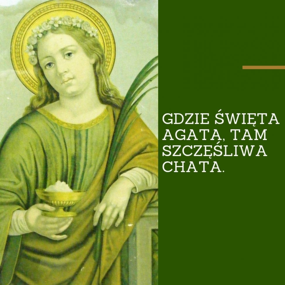 5 lutego Kościół obchodzi wspomnienie św. Agaty, dziewicy i męczennicy. Tradycja mówi, że pochodziła z miasta Katania na Sycylii, ze znamienitego rodu rzymskiego i odznaczała się nieprzeciętną urodą.