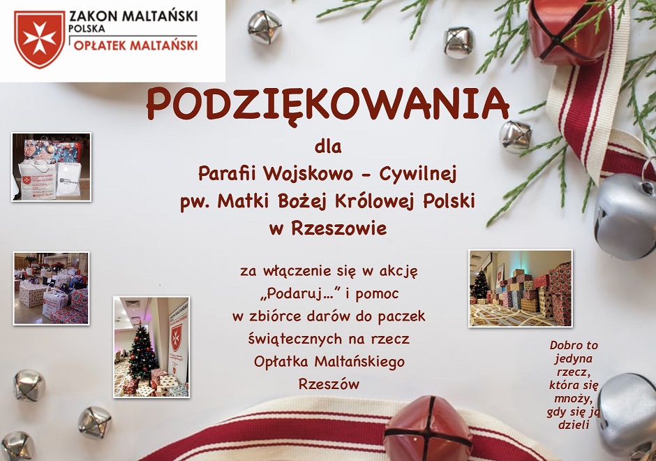 Dziękujemy!!!! Tymczasem, przygotowujemy dzięki Wam wspaniałe paczki dla 100 osób, którzy już w najbliższą niedzielę wezmą udział w VII edycji Opłatka Maltańskiego w Rzeszowie.