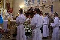 W uroczystości brali udział przedstawiciele władz państwowych i samorządowych, poczty sztandarowe służb mundurowych z dowódcą garnizonu gen. bryg. Dariuszem Lewandowskim oraz licznie zgromadzeni parafianie i zaproszeni goście. Na wstępie wikariusz generalny Biskupa Polowego ks. płk Kryspin Rak odczytał przesłanie JE bp. Wiesława Lechowicza, przygotowane na tę wyjątkową okoliczność, ukazujące trudne losy tej świątyni.
