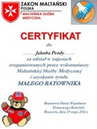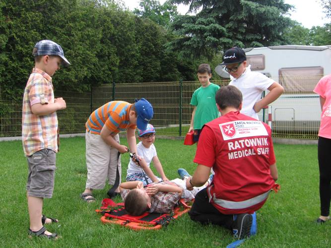 W tym czasie dzieci znajdowały się na placu przedszkolnym, pod czujną opieką wolontariuszy rzeszowskiego oddziału Maltańskiej Służby Medycznej. W formie zabawy przekazywali oni dzieciom zasady udzielania pierwszej pomocy przedmedycznej oraz reagowania w sytuacjach nagłych zagrożeń zdrowia i życia. Każdy uczestnik zabawy uzyskał Certyfikat Małego Ratownika.