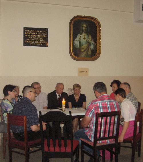 Podczas pracy w grupach szukaliśmy odpowiedzi na pytania Jakie możliwości ewangelizacyjne ma nasza wspólnota ? a jakie są potrzeby lokalnej społeczności? Oraz jak realizować postawę ewangelizatora w każdej sytuacji, w której się znajdujemy? Podczas namiotu spotkania przed wystawionym Najświętszym Sakramentem w ciszy i modlitewnym skupieniu każdy uczestnik spotkania mógł odnieść te pytania do siebie samego.