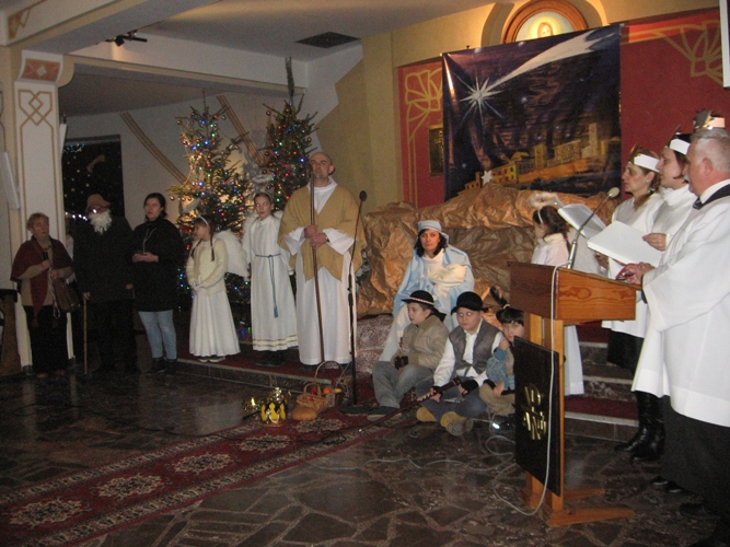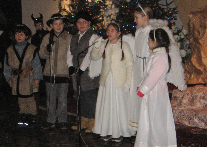 Po mszy świętej nasz rejon zaprezentował jasełka, których motywem przewodnim było ?idźcie i głoście?. Aniołki ? Amelka, Kasia i Karolina usilnie starły się przekonać różne osoby do tego żeby przygotowały się na przyjście Dzieciątka Jezus. Jednak wszyscy byli tak pochłonięci swoimi sprawami, że nawet ta informacja do nich nie docierała.