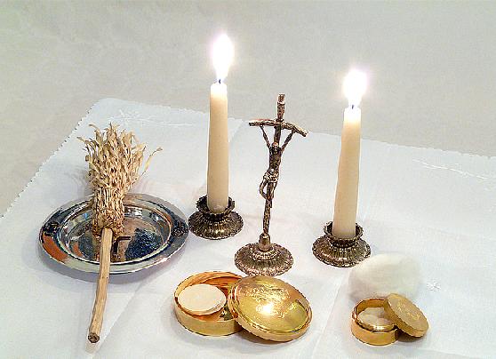 - wodę święconą i kropidło