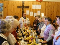 Następnie udano się na salkę na plebanii, gdzie miało miejsce tradycyjne podzielenie się poświęconym jajkiem, oraz posiłek.